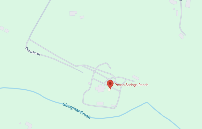 From Austin, take Loop 1 (MoPac) South to Slaughter Lane, take a right, go all the way to the end and take a right on FM 1826, go all the way to Hwy 290, take a left and go 2.9 miles and take a left on Derecho, go all the way to the end of Derecho, gate is on your left.
